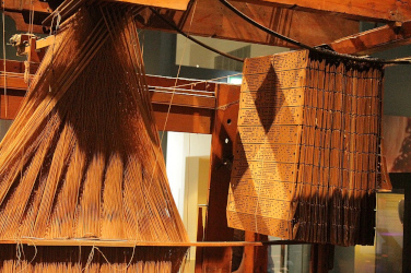 Au début du XIXᵉ siècle, Joseph-Marie Jacquard révolutionne l’industrie textile en introduisant les cartes perforées.